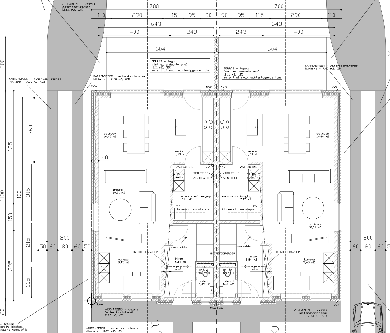 - 2 halfopen en 1 gesloten nieuwbouwwoningen in pastorijstijl